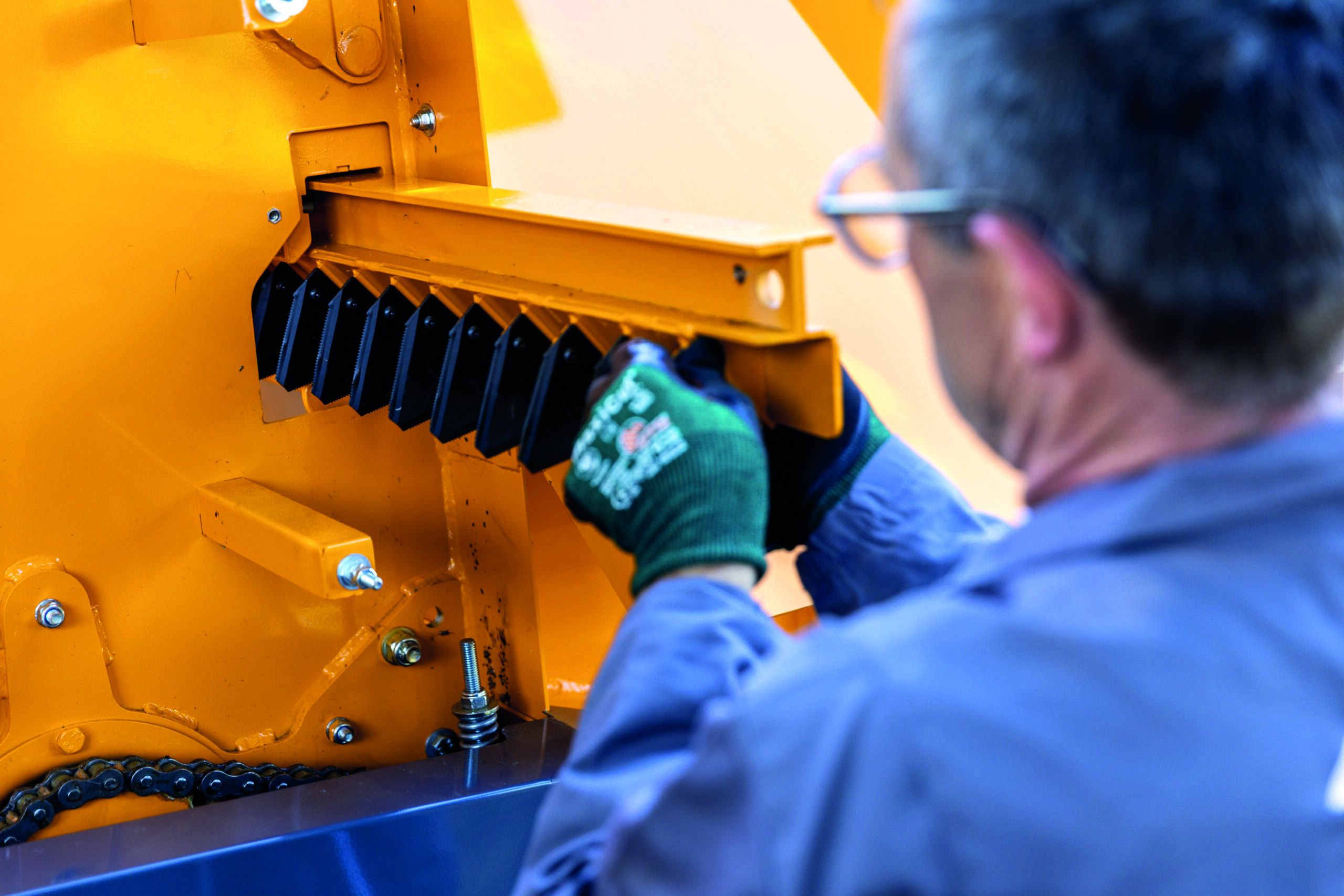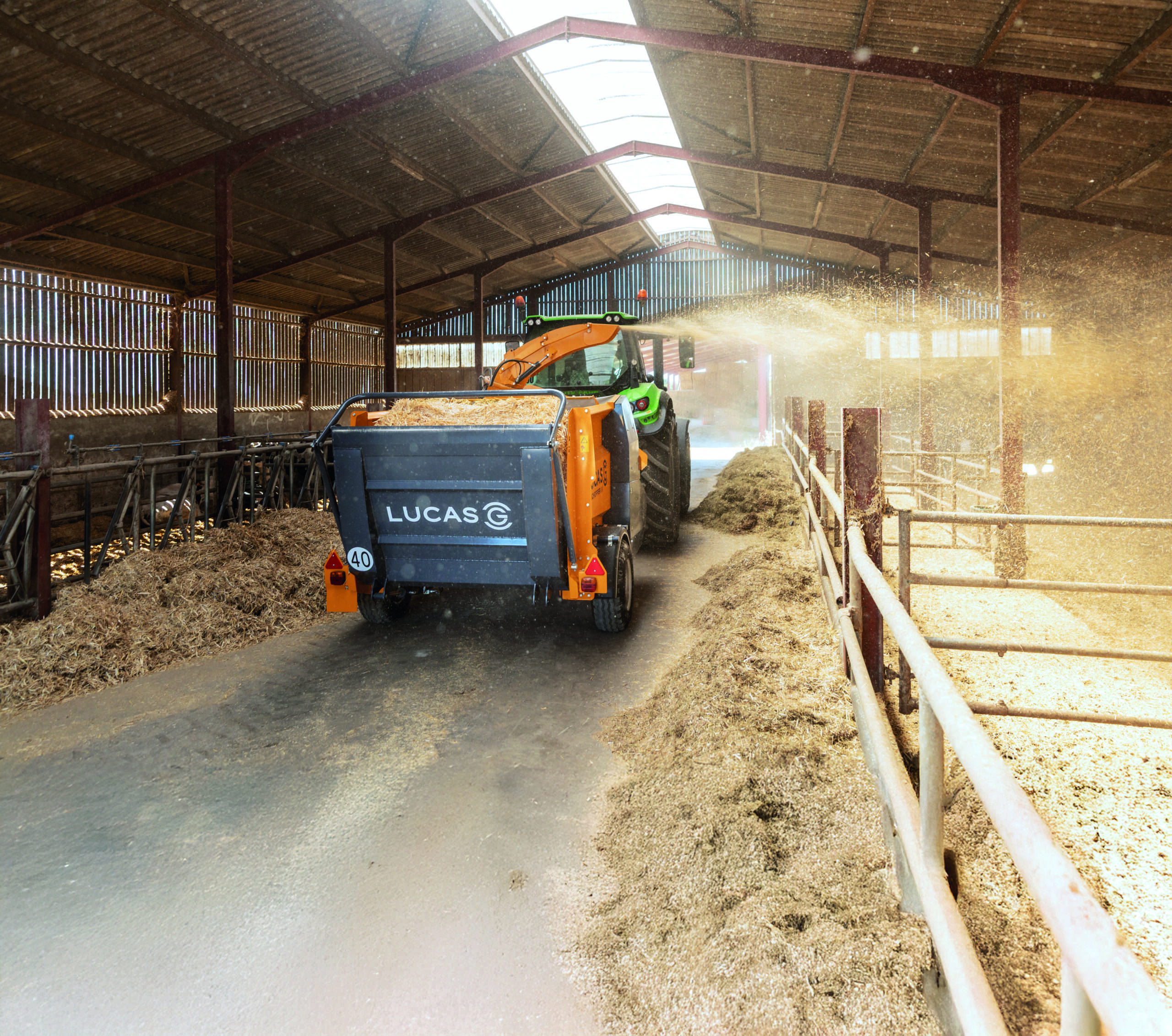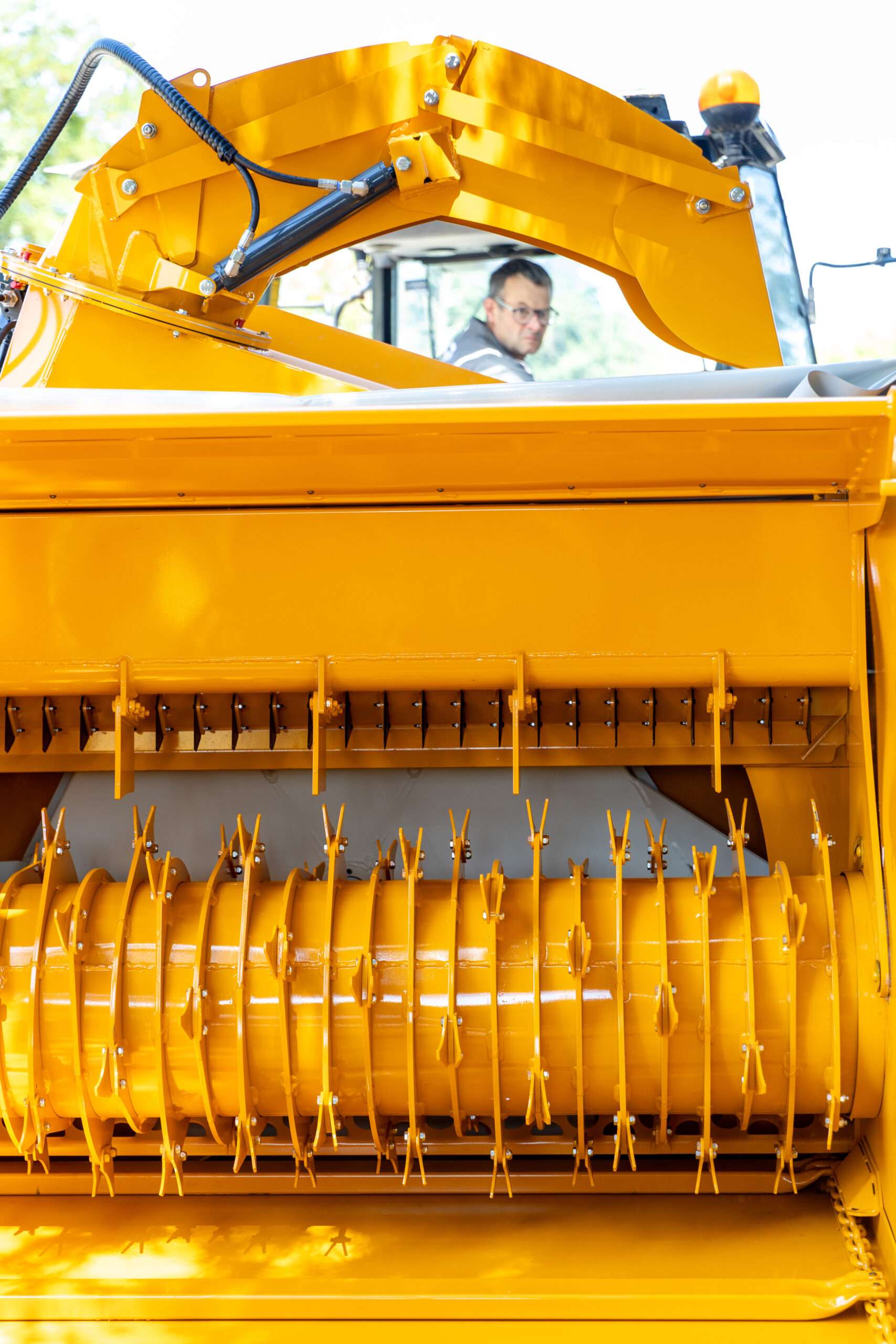 Una máquina 2 en 1: esparcimiento y triturado, según sus necesidades. Permite esparcir eficazmente la paja en las camas (cubículos, aves de corral, establos), triturar la paja para las camas (aves de corral) o incorporarla a las raciones (premix).