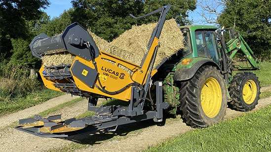 Кузов наклоняется с помощью гидравлики и предназначен для погрузки тюков; эта система также позволяет устанавливать тюк на край конвейера для размотки его сердцевины.